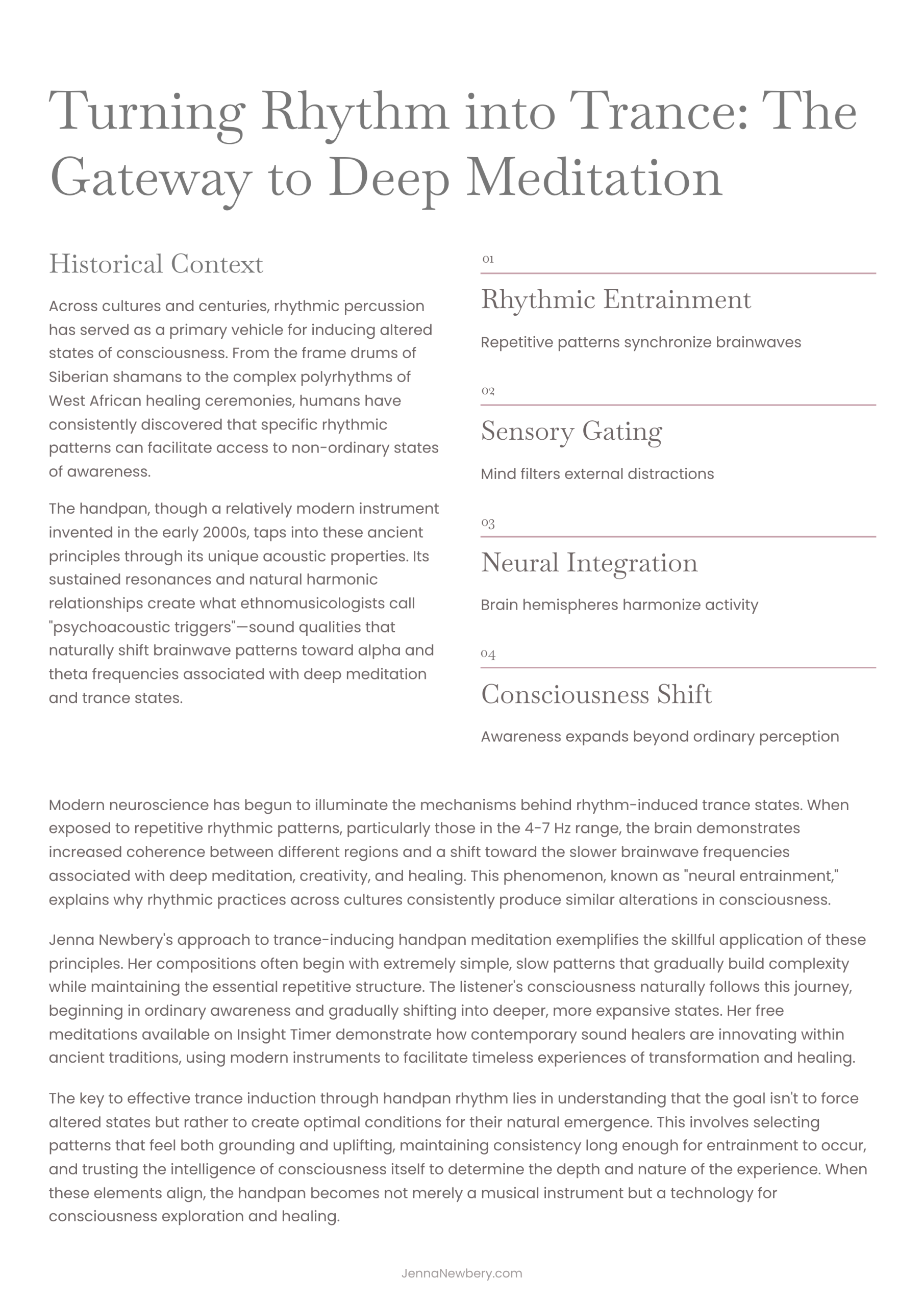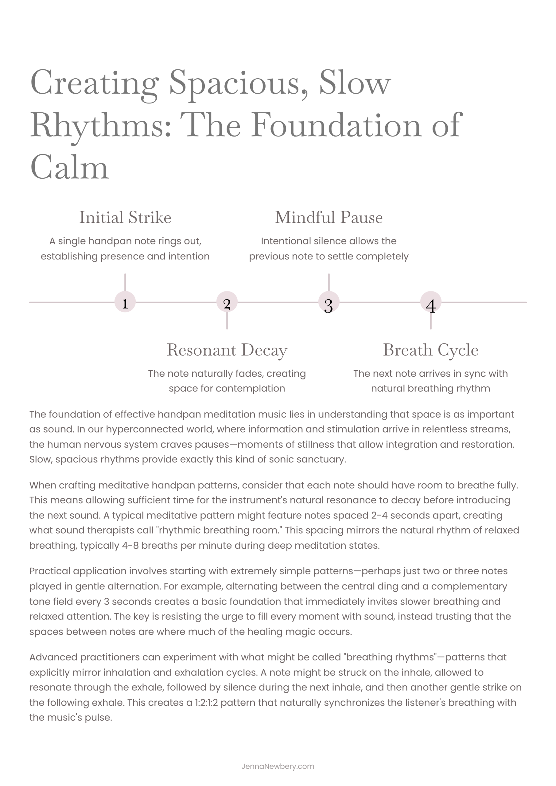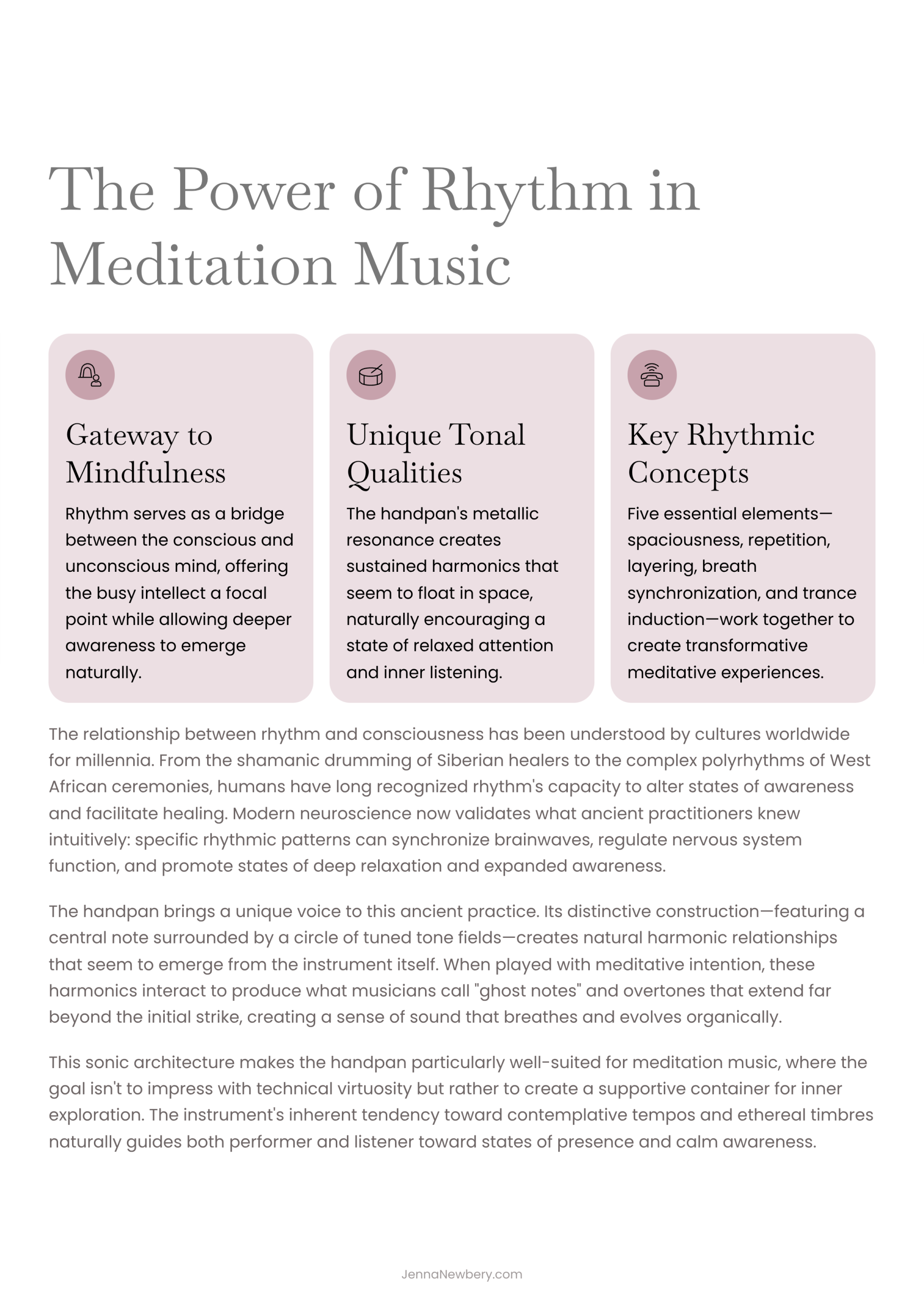 Download your free guide: Rhythmic Patterns for Handpan Meditation Music: Crafting Tranquility Through Sound — a comprehensive exploration of how rhythm becomes a healing tool for both the player and the listener.